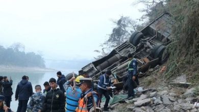 KATHMANDU: A bus in Nepal skidded off a mountain road and plunged into an icy river, police said Monday, killing…