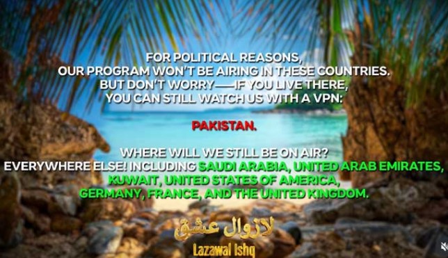 YouTube has hit pause on a first Urdu reality show “Lazawal Ishq”, or “Eternal Love” in Pakistan. The “Lazawal Ishq”, or “Eternal Love”, aired 50 episodes before it was recently taken off YouTube in the country, though it is still available elsewhere.
