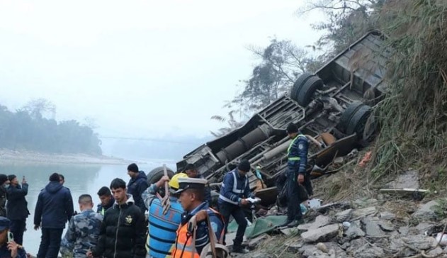The bus, en route from the tourist city of Pokhara to the capital city Kathmandu, fell more than 200 metres (655 feet) into the Trishuli River in Dhading district in the early hours of Monday morning.