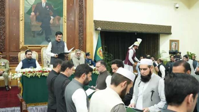 The cabinet members took the oath a day earlier at a ceremony held at the Governor House in the provincial capital of Peshawar.