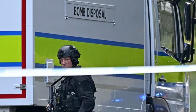 Police said the death could not be confirmed due to “suspicious items on his person”, noting a bomb disposal unit was at the scene.