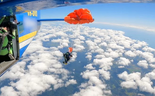 A video released by the Australian Transport Safety Bureau showed the participant’s reserve parachute being activated after its handle snagged the wing flap of the plane.